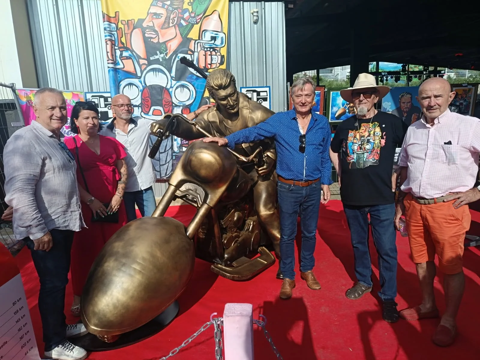 JohGuitar La Légende du Taulier Carte Postale Toile Timbre LA STATUE LE LIVRE ELLE EST ARRIVÉE EN GRAND Salut Jo’Guitar, la légende du Rock! (15 Juin 2025)Pier l’ancien